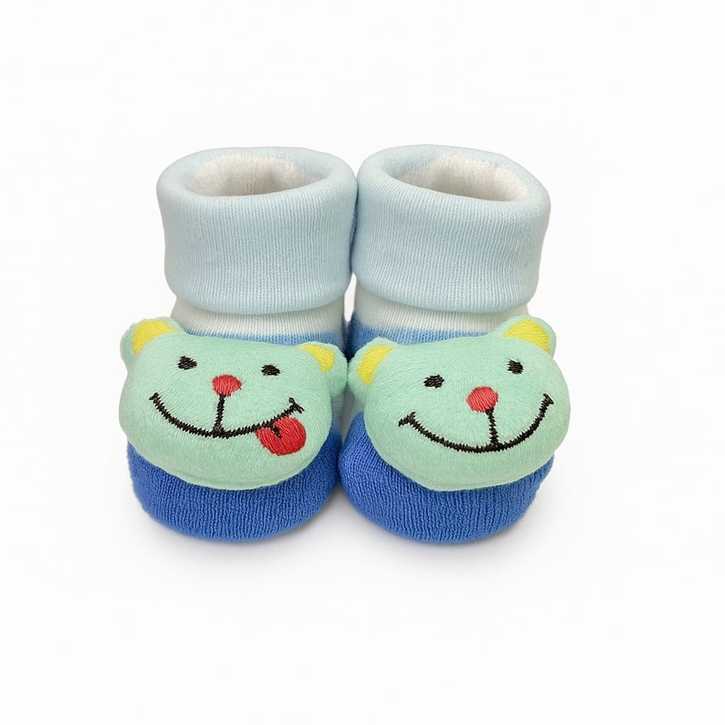 Baby Booties with 3D Bear Face – Soft Cotton Booties for Infants (0–6 Months)