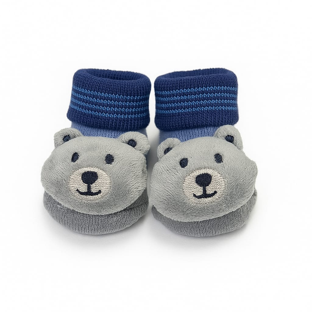Baby Booties with 3D Bear Face – Soft Cotton Booties for Infants (0–6 Months)