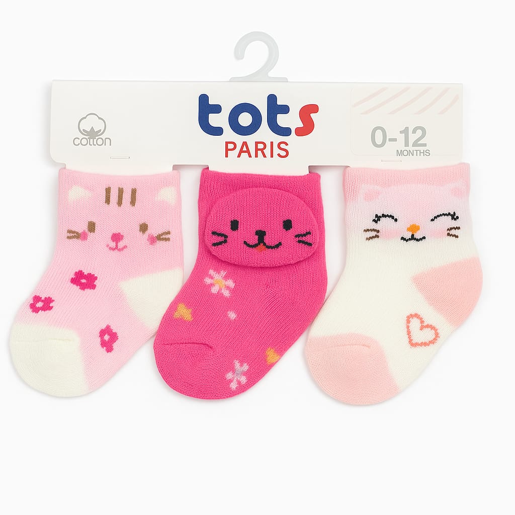 Baby Girls' Cat-Themed Socks Set (0–12 Months, Pack of 3)
