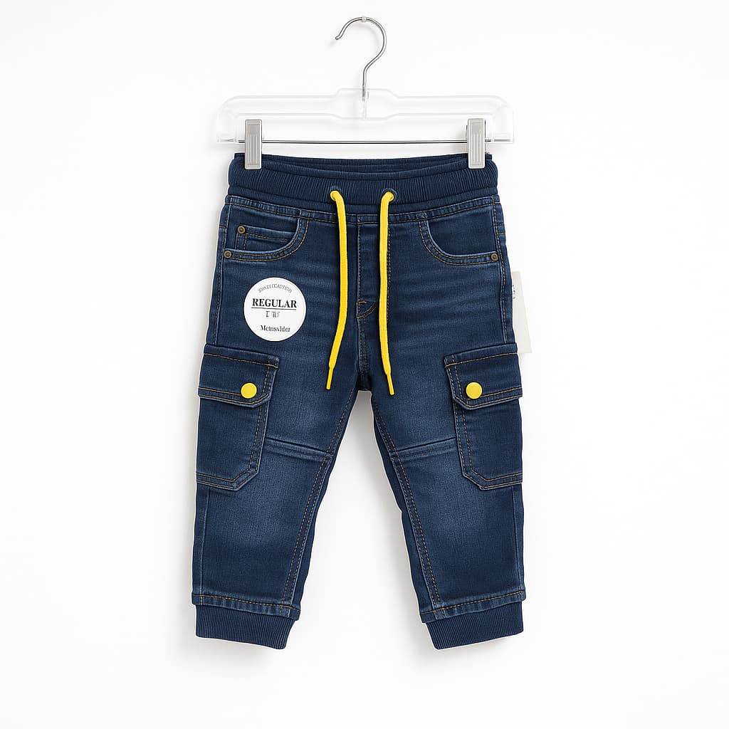 Boys' Dark Blue Denim Cargo Jogger Pants