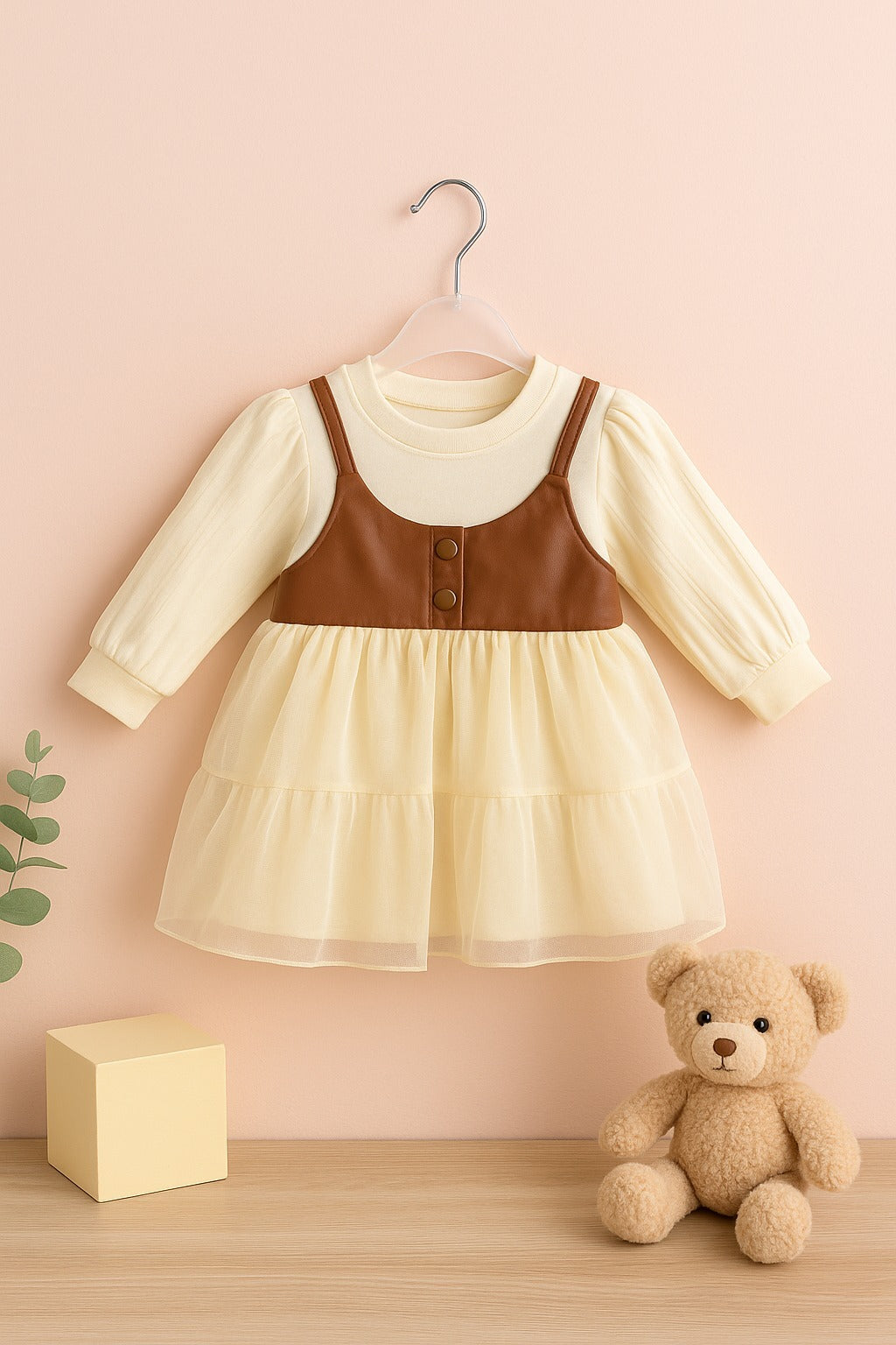 Elegant brown & Cream Layered Dress Set for Baby Girls