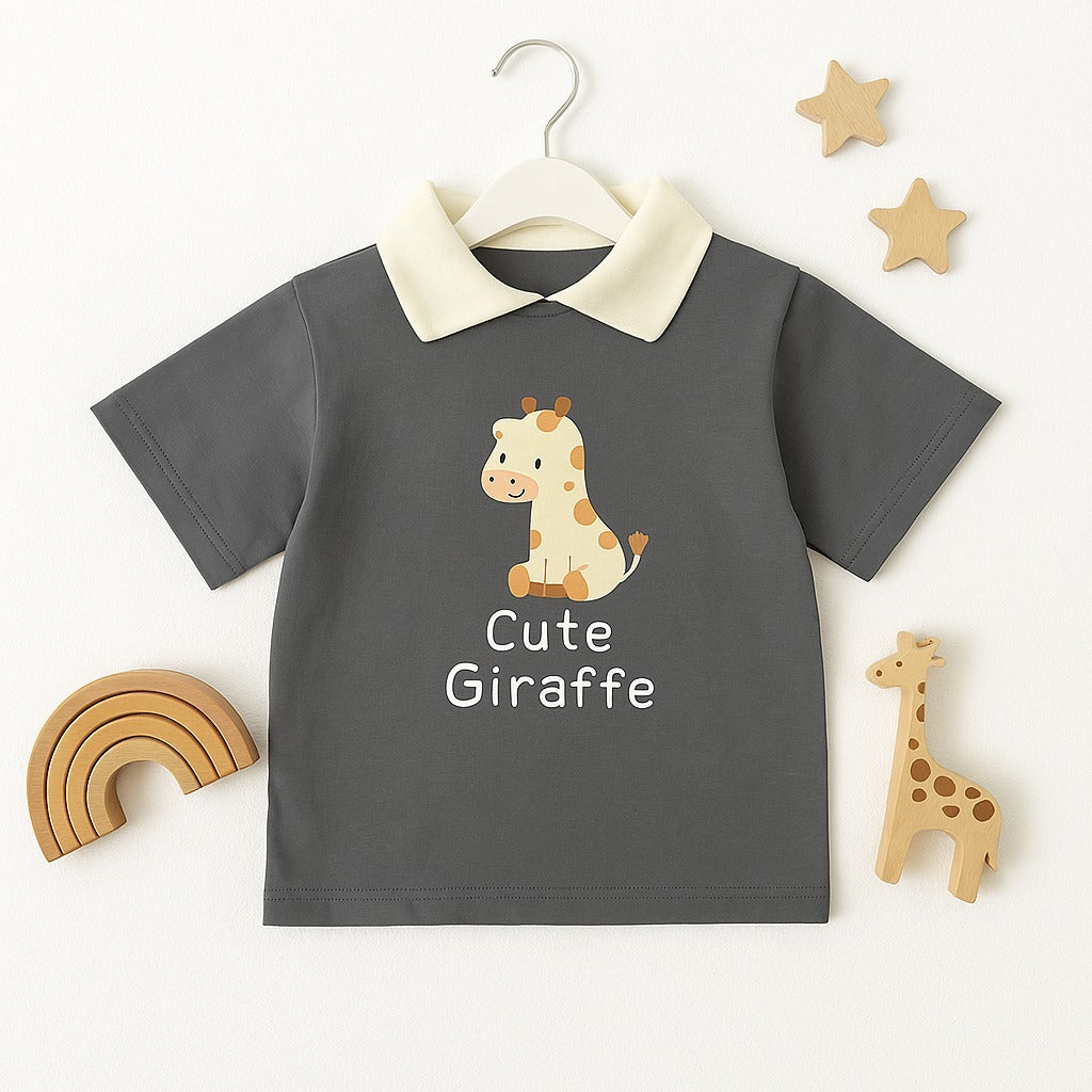 Cute Giraffe Print Polo T-Shirt for Boys – Soft & Stylish