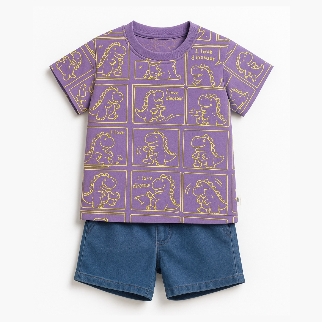 Purple Dinosaur Print T-Shirt and Blue Shorts Set – Tots Paris