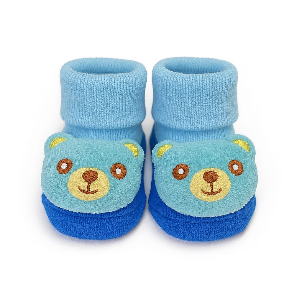 Baby Booties with 3D Bear Face – Soft Cotton Booties for Infants (0–6 Months)