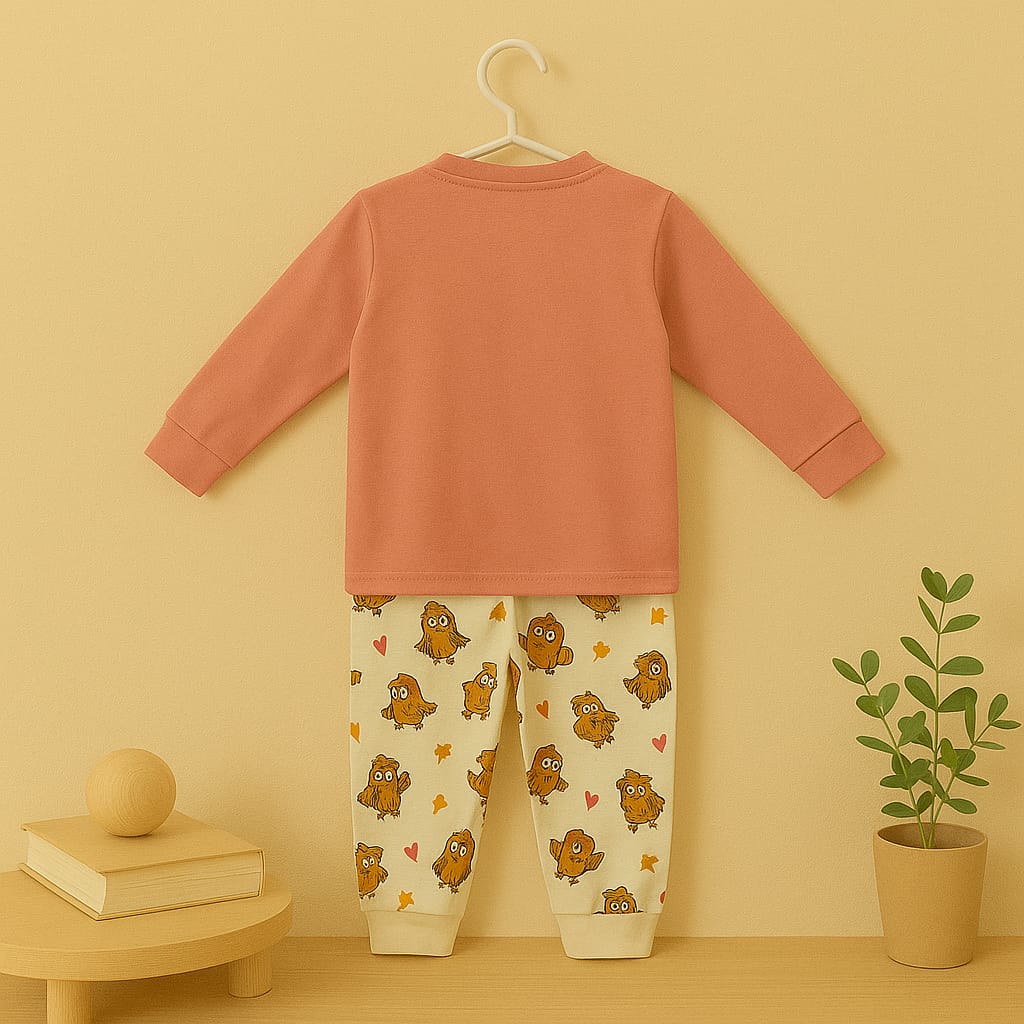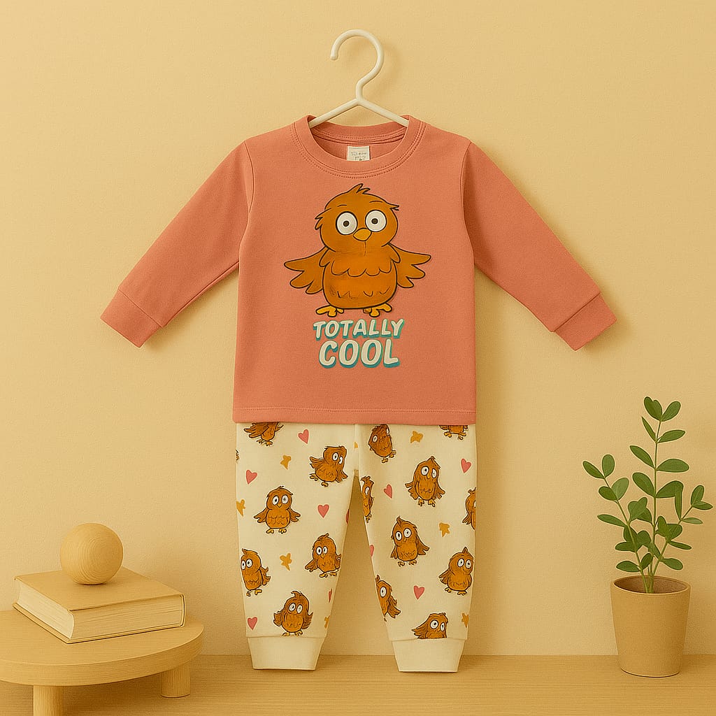 “Totally Cool” Owl Print Cotton Nightwear Set for Toddlers