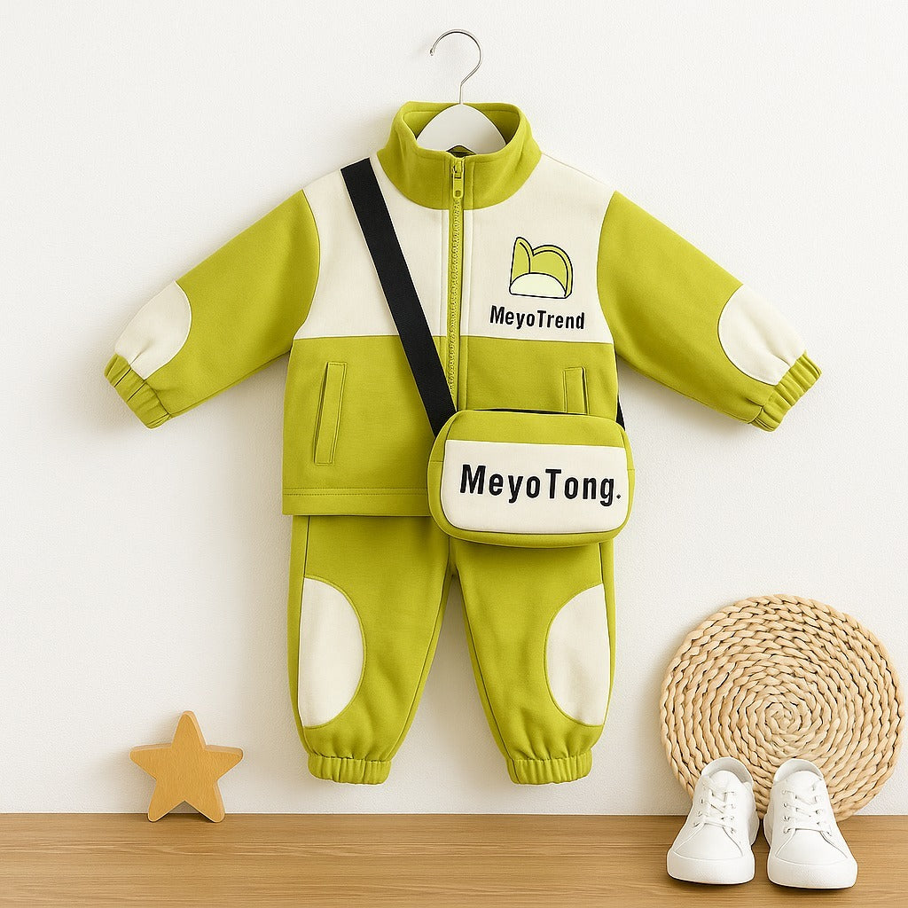 Unisex Green & White Winter Tracksuit Set with Crossbody Bag – Stylish 3-Piece Ensemble