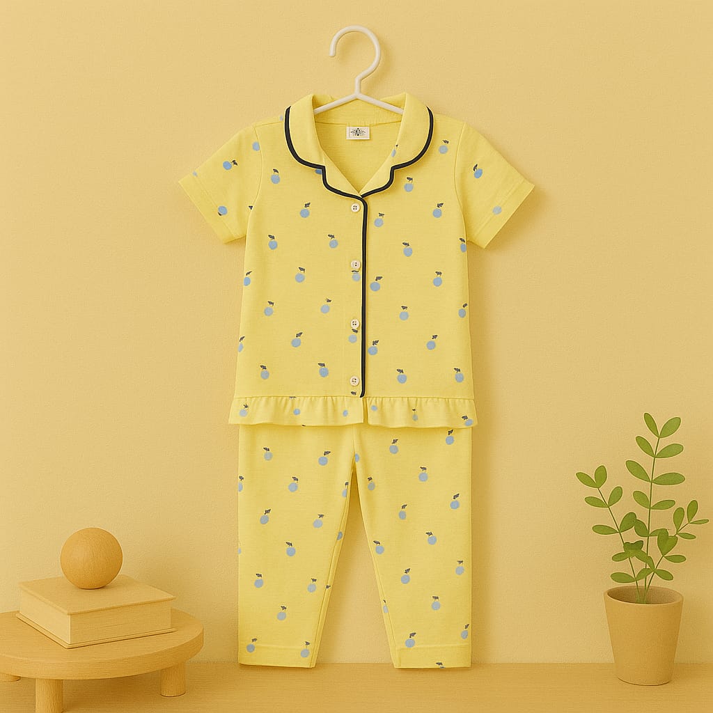 Yellow Fruity Print Cotton Summer Pajama Set for Toddlers